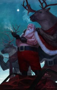 Today I have a collection of Santa & Krampus art that I came across a couple weeks ago. I think they were created by several different artists and I don’t know who did what. Still, they’re all pretty cool though. Enjoy!