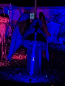 It’s Monday. The girlfriend and I had some errands to run Saturday evening. After getting those done, we decided to take a spin around the neighborhood and check out some of the Halloween decorations. I turned on channel 107 Scream radio on Sirius/XM and it was windy, lightly raining, and chilly which made for a perfect spooky season mood. We were out for a couple hours and found all kinds of really cool displays. This year anything giant was popular. Twelve foot skeletons, eighteen food ghouls, and twenty foot demons towered over everything. I wish they had stuff like this back when I was a kid. If I wanted a creepy scarecrow, I had to create it myself by stuffing a pair of old jeans and a shirt with leaves from the yard. Anyway, we had a great time driving around and we look forward to at least one more spooky cruise before Halloween.